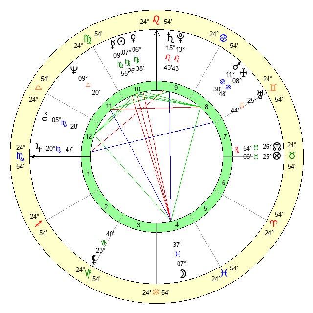 | Sun | 7 Virgo 26 | 8 Virgo 32 | 24 Scorpio 30 |