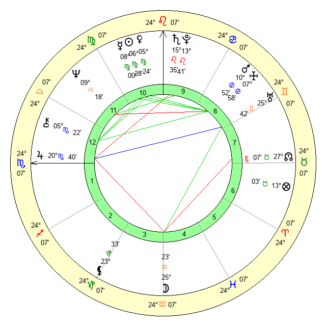 | Mercury | 8 Virgo 1 | 24 Leo 39 | 5 Scorpio 44 |