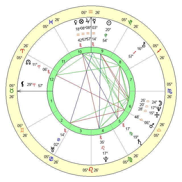 | Moon | 24 Libra 26 | 23 Gemini 27 | 16 Cancer 22 |