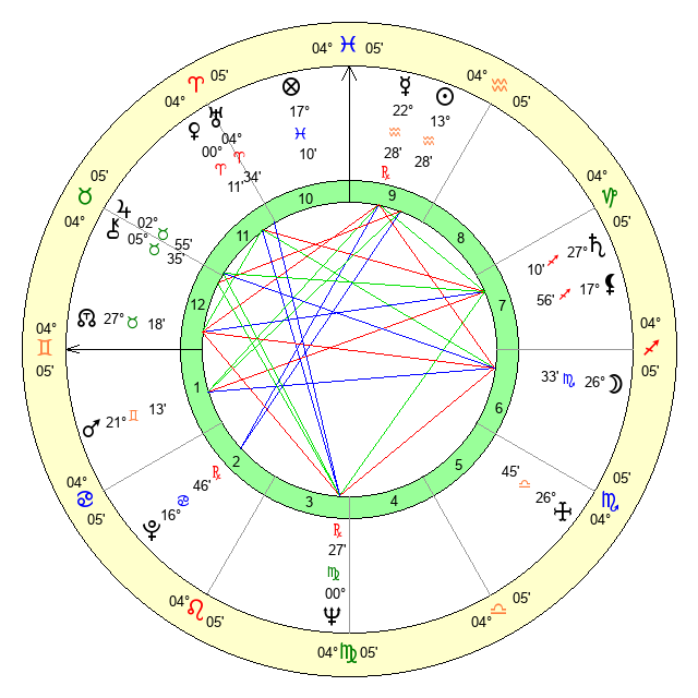 | Moon | 26 Scorpio 31 | 10 Aries 33 | 26 Taurus 4 |