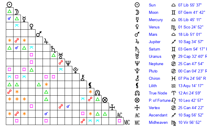Sun | 7 Libra 56 | 8 Libra 34 | 1 Aquarius 53 |