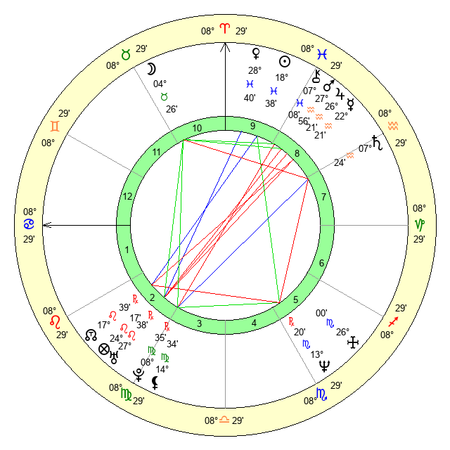 | Jupiter | 26 Aquarius 13 | 13 Gemini 4 | 8 Pisces 32 |