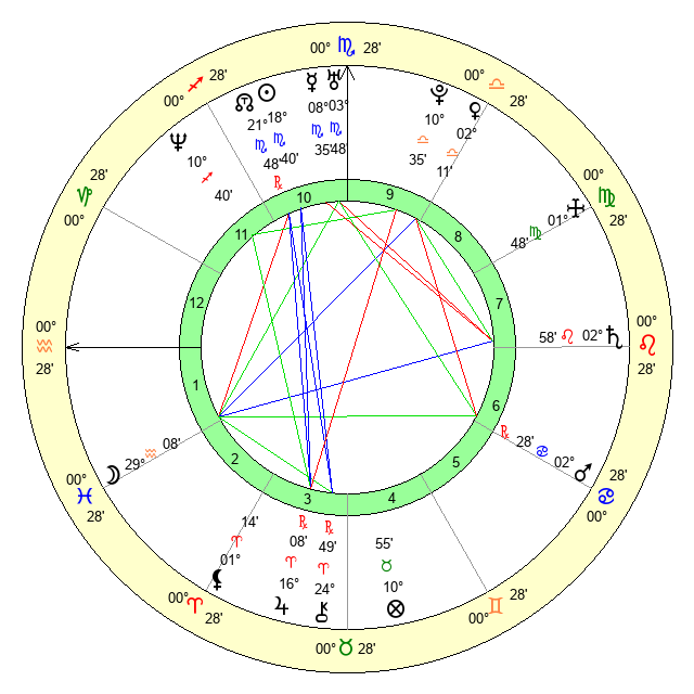 | Moon | 29 Aquarius 17 | 13 Leo 9 | 28 Sagittarius 8 |