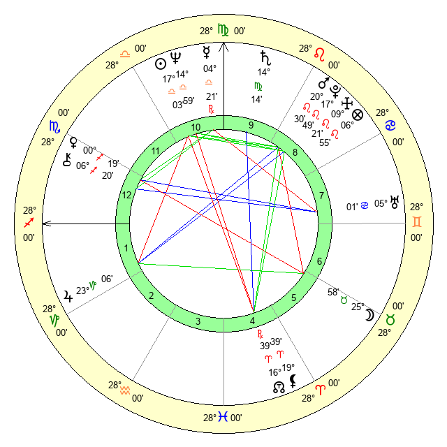 | Saturn | 14 Virgo 42 | 26 Pisces 56 | 19 Virgo 56 |