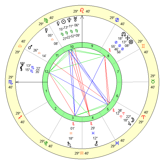 | Venus | 15 Virgo 28 | 14 Leo 26 | 2 Sagittarius 41 |