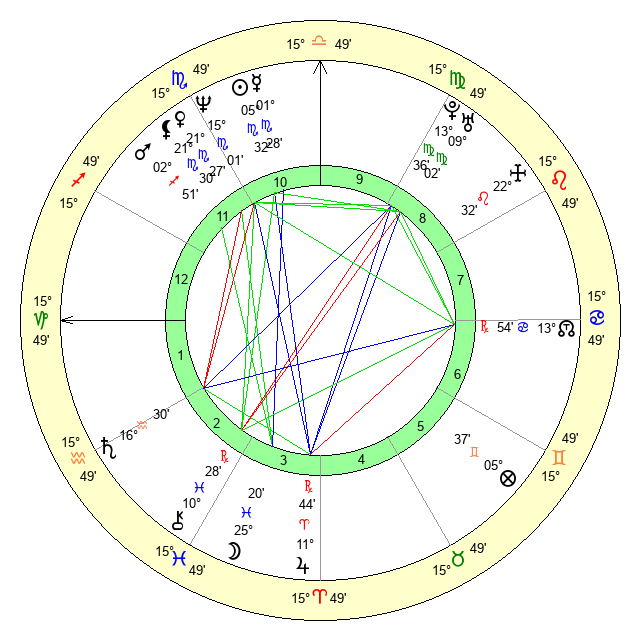 | Neptune | 15 Scorpio 1 | 29 Pisces 49 | 17 Scorpio 9 |