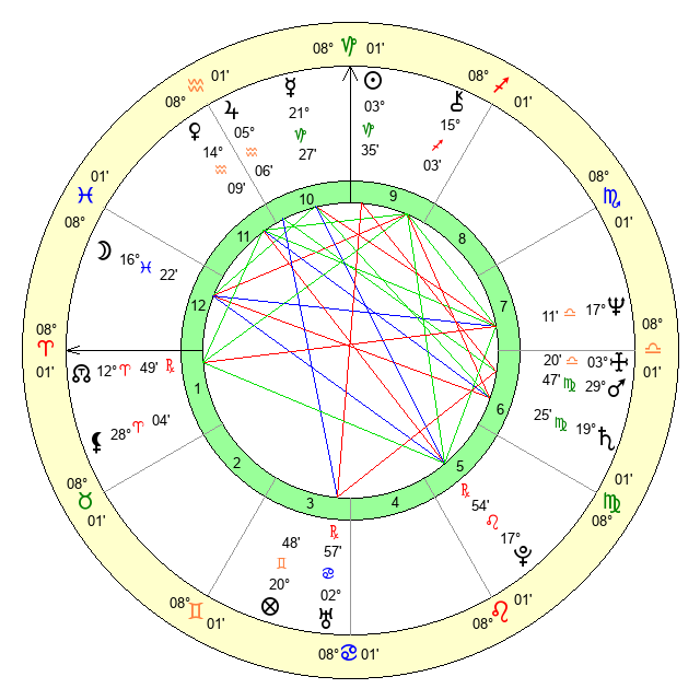 | Moon | 16 Pisces 27 | 8 Pisces 32 | 28 Sagittarius 13 |