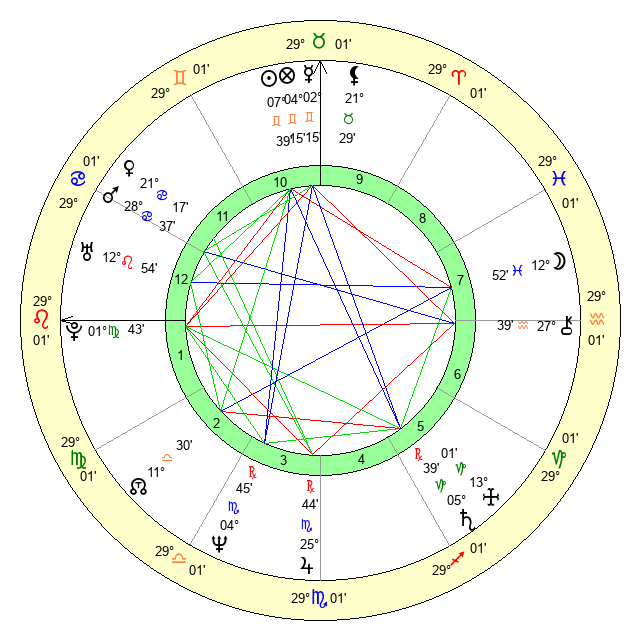 | Sun | 7 Gemini 39 | 8 Gemini 39 | 10 Leo 41 |