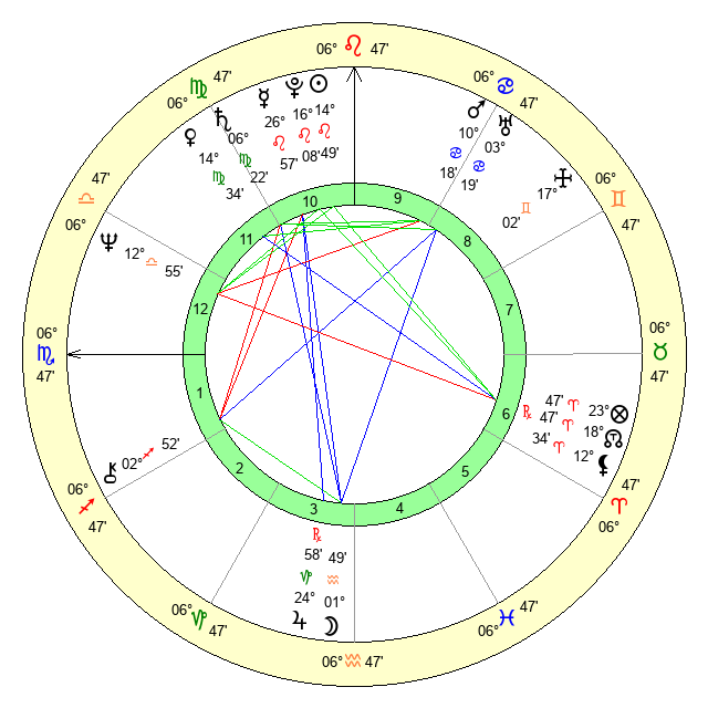 | Saturn | 6 Virgo 50 | 1 Aries 16 | 16 Virgo 0 |