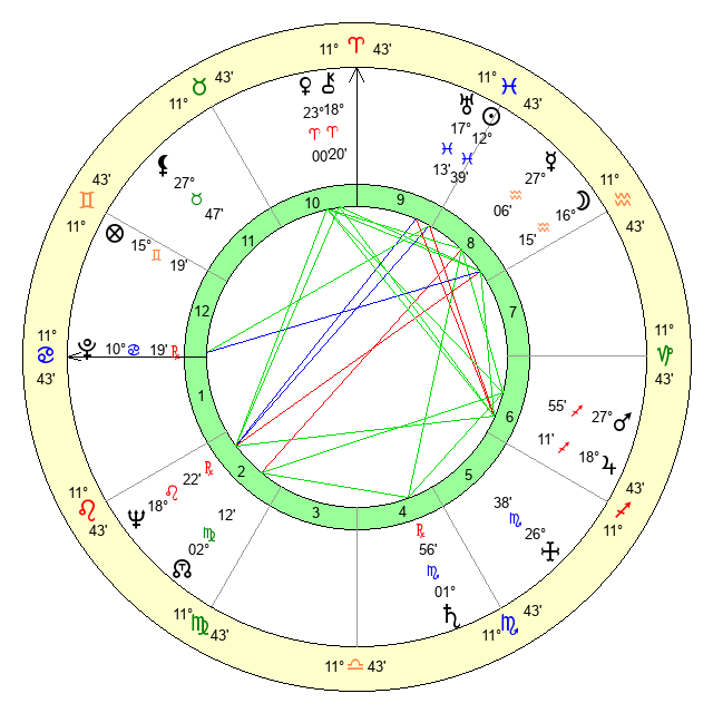 | Mars | 27 Sagittarius 55 | 17 Cancer 21 | 25 Aquarius 24 |