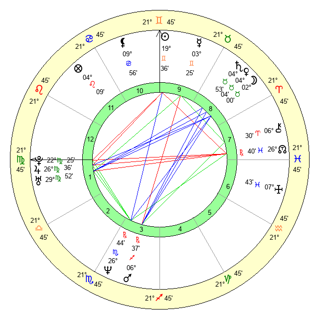 | Sun | 19 Gemini 37 | 20 Gemini 4 | 13 Leo 4 |