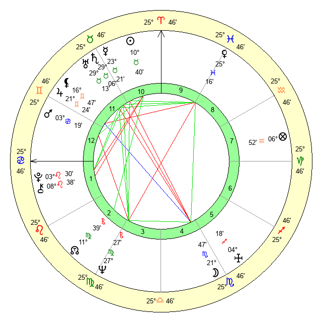 Moon | 21 Scorpio 46 | 5 Cancer 46 | 3 Sagittarius 2 |