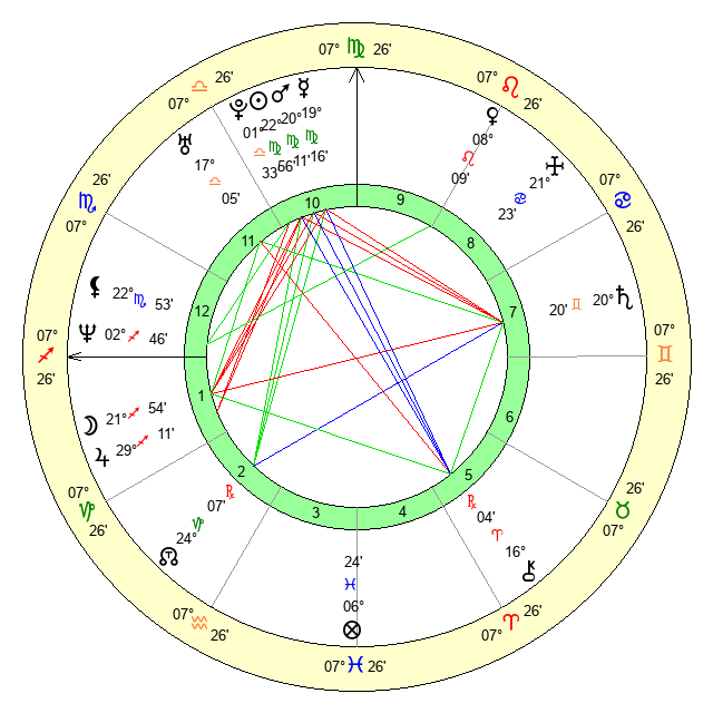 | Sun | 22 Virgo 56 | 23 Virgo 6 | 15 Scorpio 23 |
