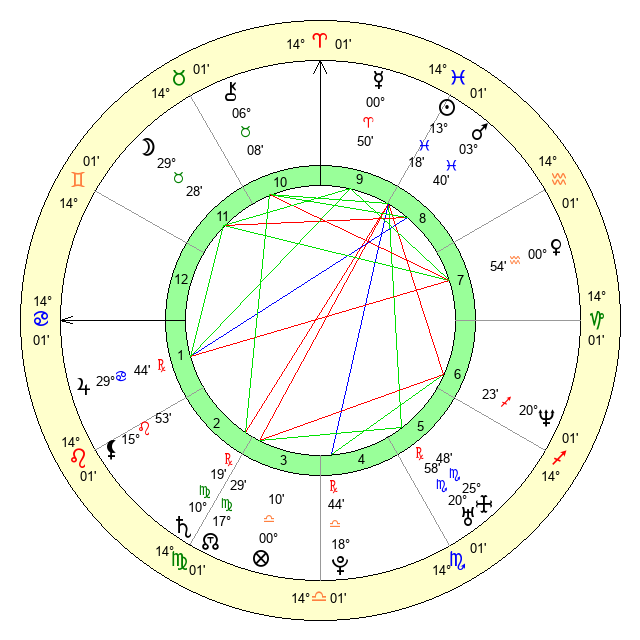 | Mars | 3 Pisces 40 | 17 Cancer 26 | 9 Aries 39 |