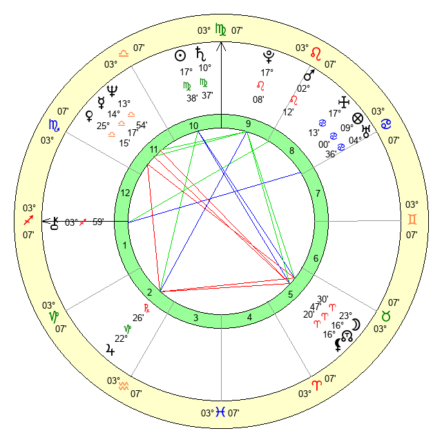 | Saturn | 11 Virgo 4 | 29 Pisces 12 | 18 Virgo 51 |