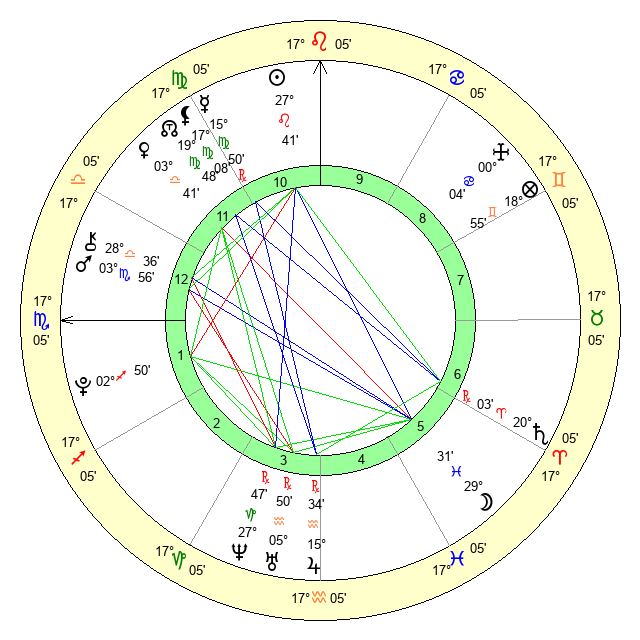 | Venus | 3 Libra 41 | 24 Cancer 4 | 6 Scorpio 30 |