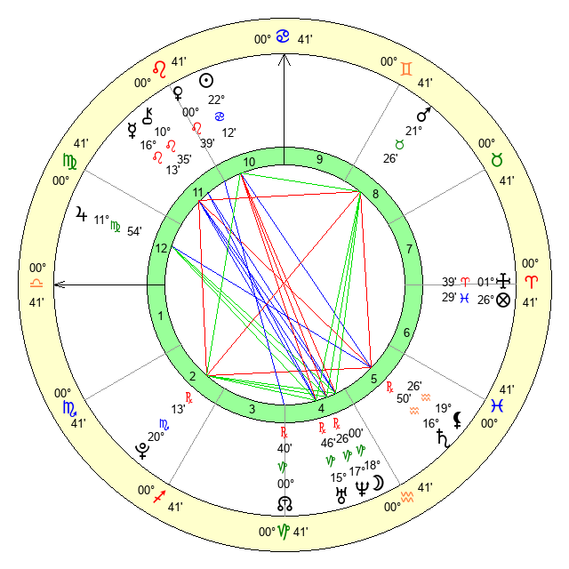 | Venus | 0 Leo 40 | 10 Gemini 53 | 11 Virgo 15 |
