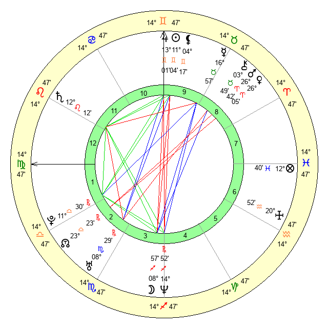 | Moon | 9 Sagittarius 2 | 24 Leo 48 | 6 Virgo 0 |
