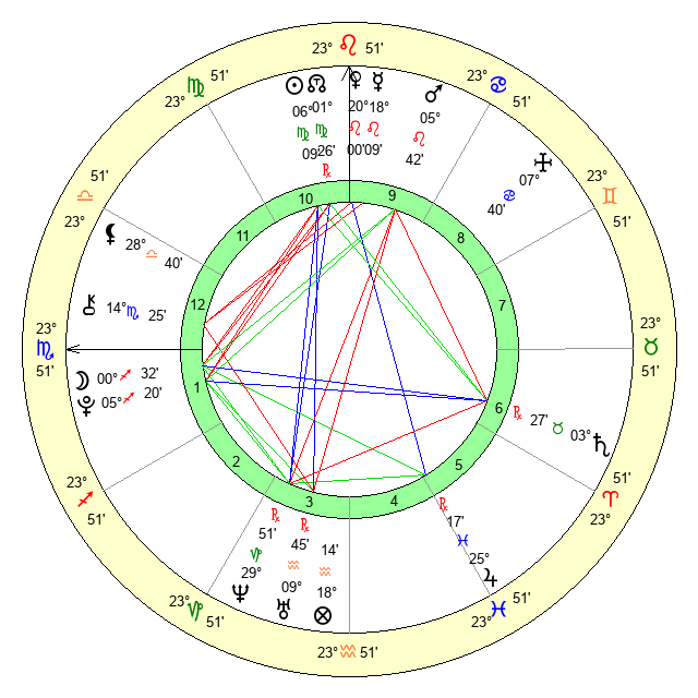 | Sun | 6 Virgo 9 | 6 Virgo 36 | 2 Libra 25 |