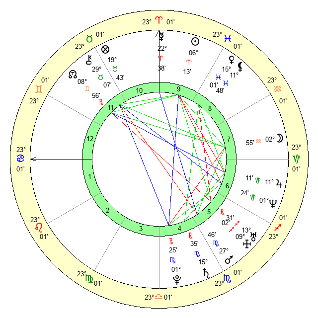 | Mars | 27 Scorpio 46 | 21 Cancer 58 | 22 Scorpio 28 |
