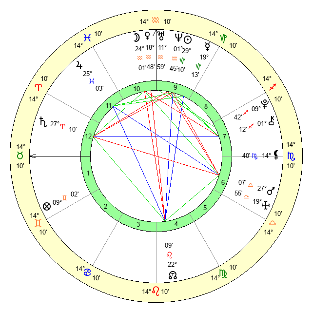 | Moon | 24 Aquarius 3 | 6 Libra 37 | 6 Aquarius 2 |