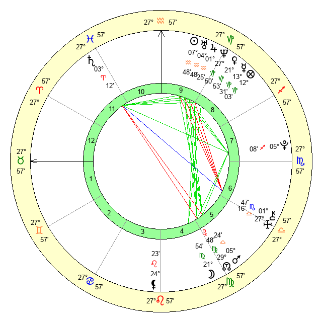 | Moon | 21 Virgo 52 | 14 Capricorn 55 | 0 Libra 48 |
