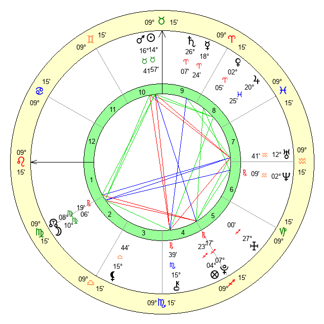 | Moon | 10 Virgo 7 | 28 Leo 11 | 6 Virgo 30 |