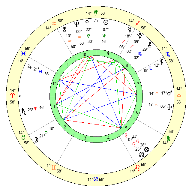| Mars | 17 Libra 14 | 2 Leo 39 | 29 Libra 15 |