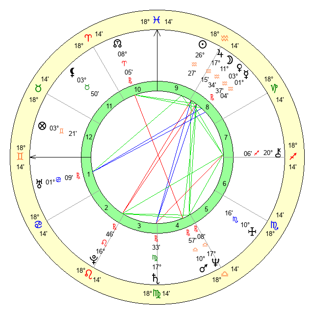 | Saturn | 18 Virgo 6 | 19 Pisces 1 | 13 Virgo 17 |