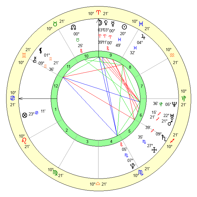 | Moon | 3 Aries 33 | 22 Leo 9 | 25 Leo 48 |