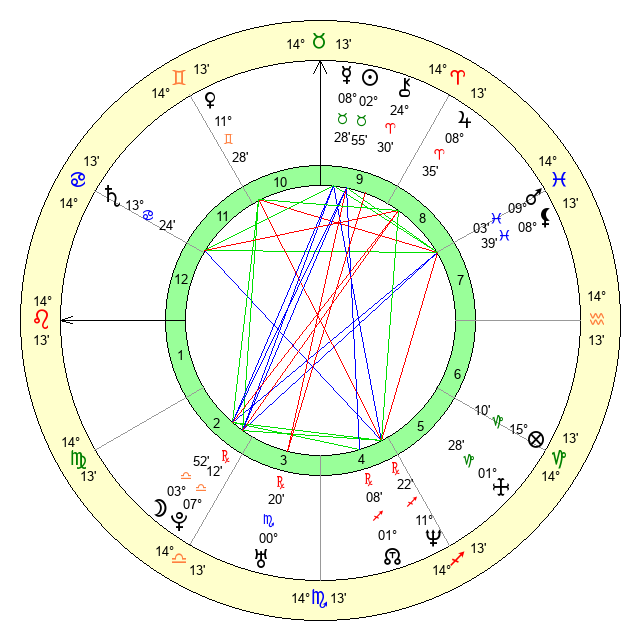 | Mars | 9 Pisces 4 | 2 Leo 20 | 16 Aries 39 |