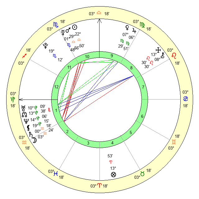 | Mars | 29 Libra 57 | 16 Scorpio 41 | 23 Scorpio 22 |