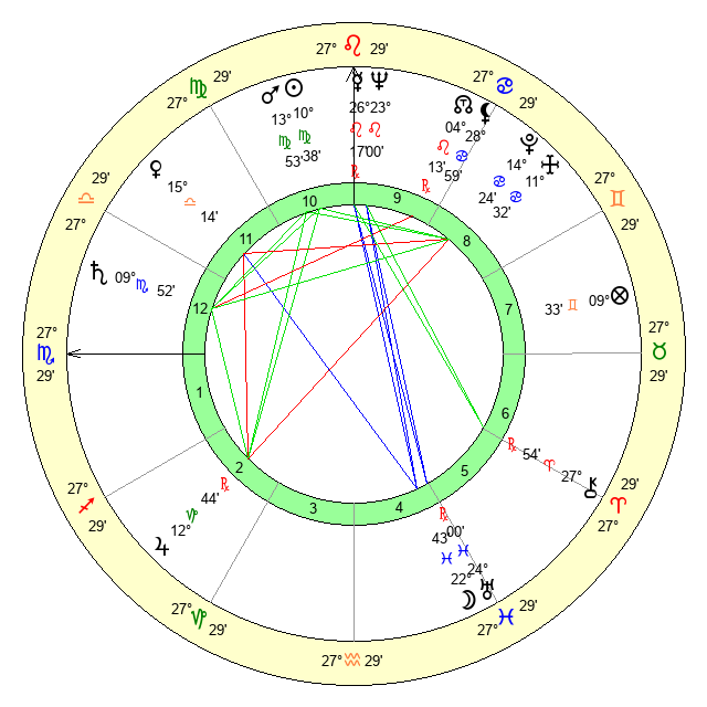 | Mercury | 26 Leo 18 | 2 Virgo 12 | 17 Sagittarius 42 |