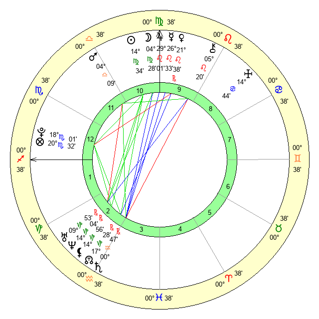 | Moon | 4 Virgo 27 | 14 Pisces 39 | 3 Sagittarius 44 |