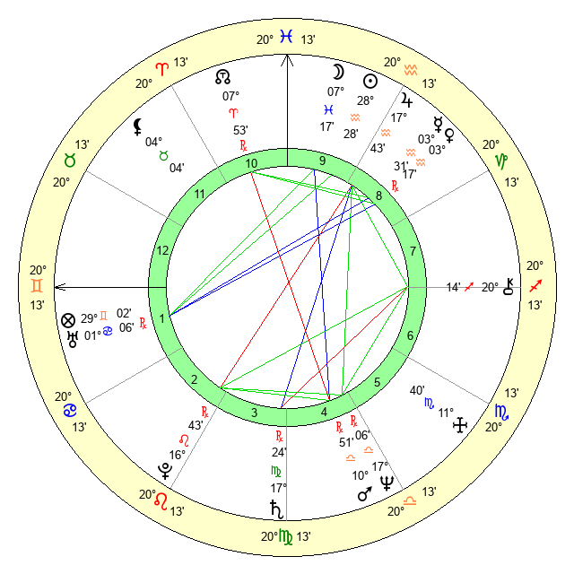 | Saturn | 17 Virgo 58 | 19 Pisces 15 | 13 Virgo 14 |