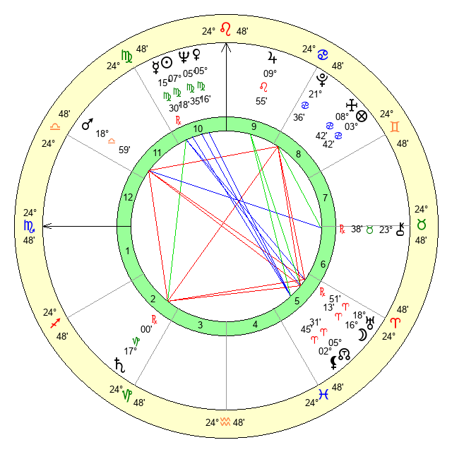 | Venus | 5 Virgo 17 | 7 Leo 12 | 2 Capricorn 29 |