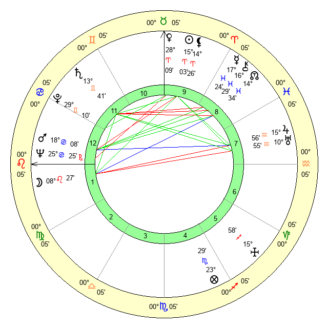 | Sun | 15 Aries 4 | 16 Aries 9 | 1 Leo 52 |