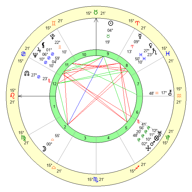 | Sun | 4 Taurus 20 | 5 Taurus 44 | 27 Leo 28 |