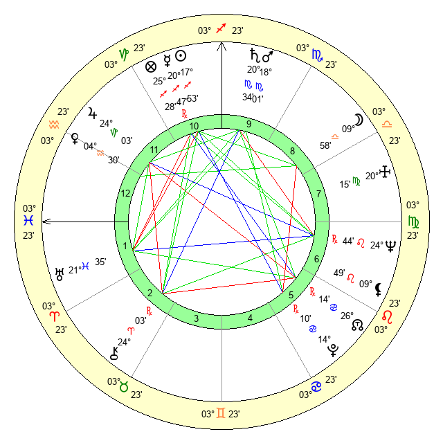 | Saturn | 21 Scorpio 3 | 25 Pisces 12 | 26 Scorpio 24 |