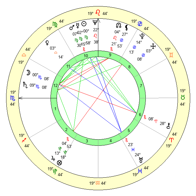 | Moon | 0 Scorpio 9 | 18 Virgo 54 | 6 Cancer 55 |