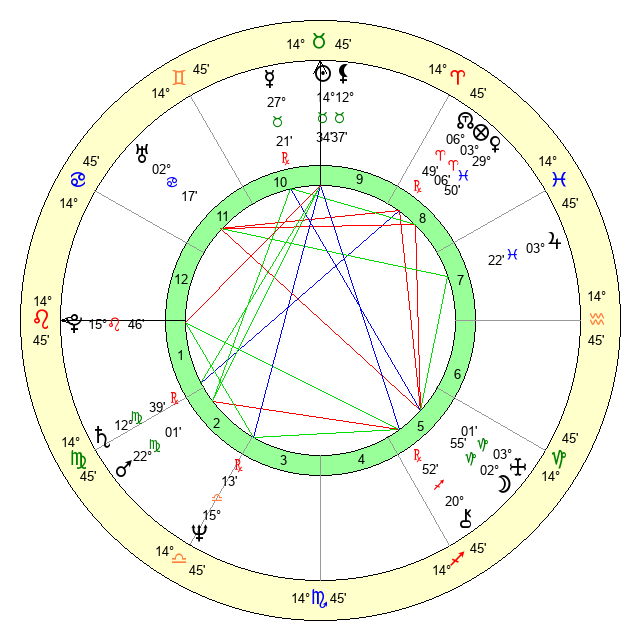 | Saturn | 13 Virgo 12 | 28 Pisces 13 | 16 Virgo 27 |
