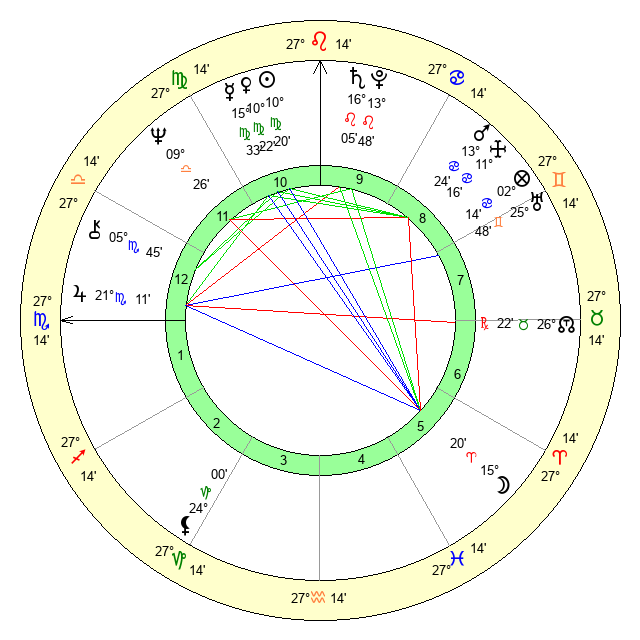 | Mercury | 15 Virgo 34 | 2 Virgo 12 | 8 Scorpio 5 |