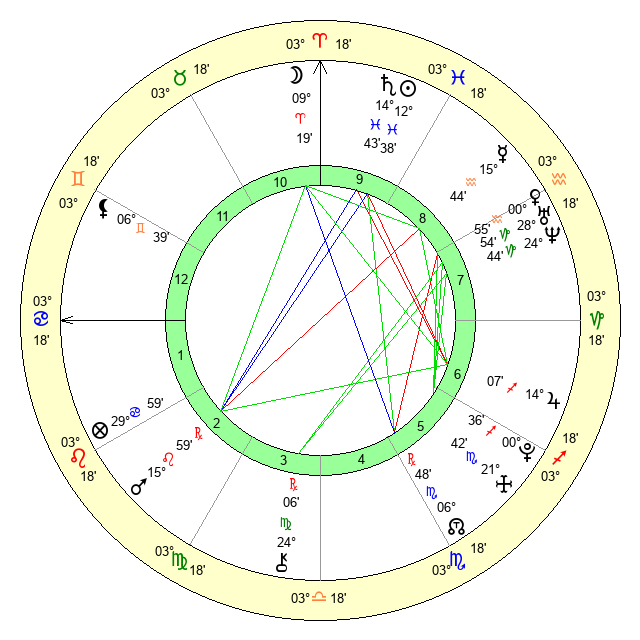 | Sun | 12 Pisces 38 | 13 Pisces 22 | 12 Aries 29 |