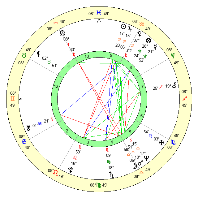 | Jupiter | 15 Aquarius 2 | 11 Gemini 17 | 1 Pisces 12 |