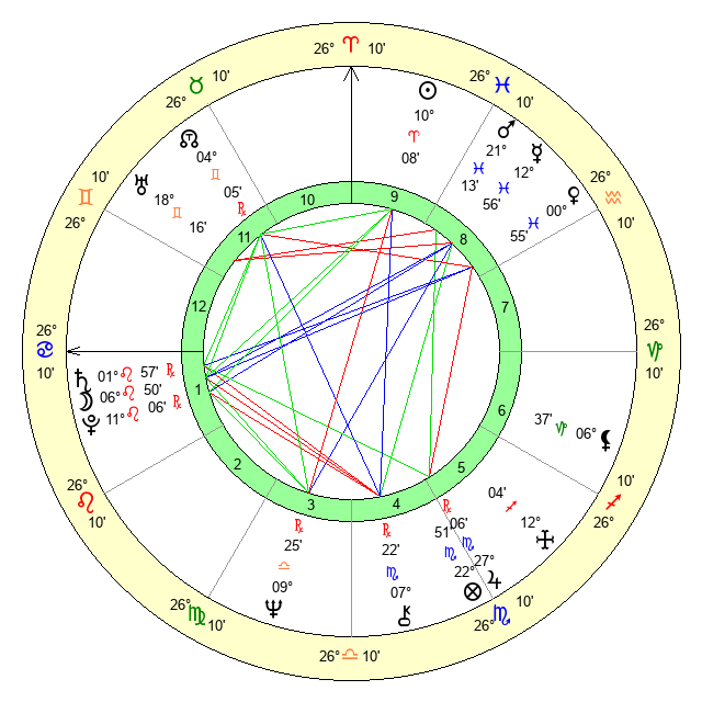 | Mars | 21 Pisces 14 | 23 Cancer 30 | 20 Taurus 22 |