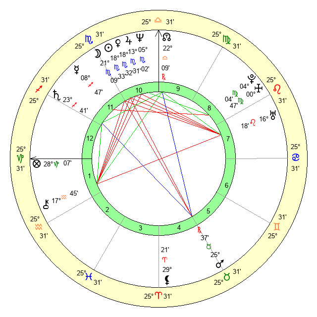 | Moon | 21 Scorpio 9 | 9 Leo 47 | 2 Taurus 39 |