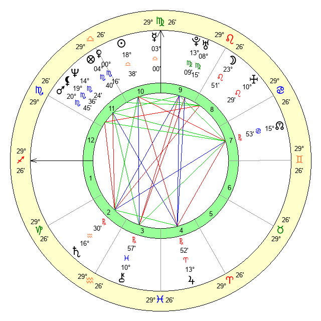 | Venus | 0 Scorpio 17 | 28 Virgo 32 | 17 Capricorn 30 |