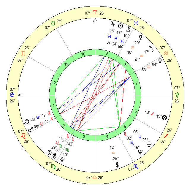 | Moon | 29 Leo 4 | 13 Cancer 43 | 29 Scorpio 11 |