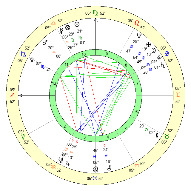 | Mercury | 3 Libra 27 | 8 Virgo 40 | 9 Capricorn 29 |