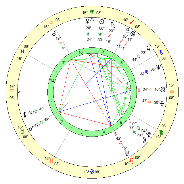 Jupiter | 23 Scorpio 37 | 13 Gemini 20 | 1 Sagittarius 37 |